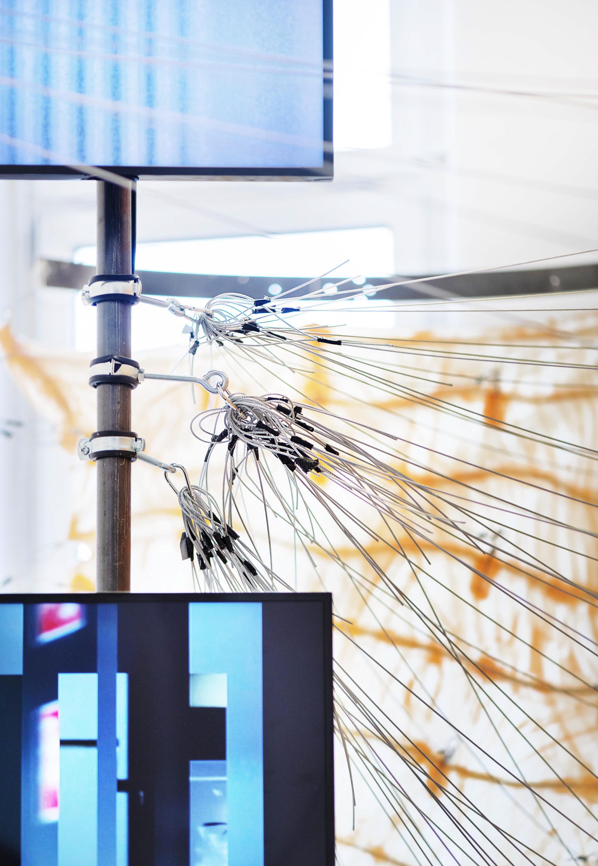 2022: Latex, steel, carabiner, metall strings, video-installation,